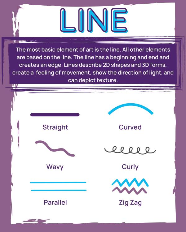 This is the most basic element of art. All of the other elements are based on line, so it’s the perfect place to start!