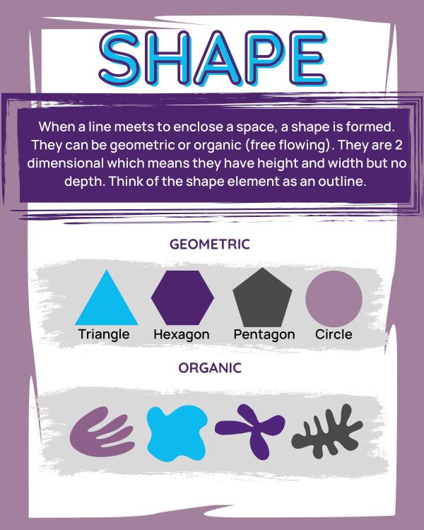 When a line meets to enclose a space, it creates a shape. These are 2D objects like circles and triangles.
