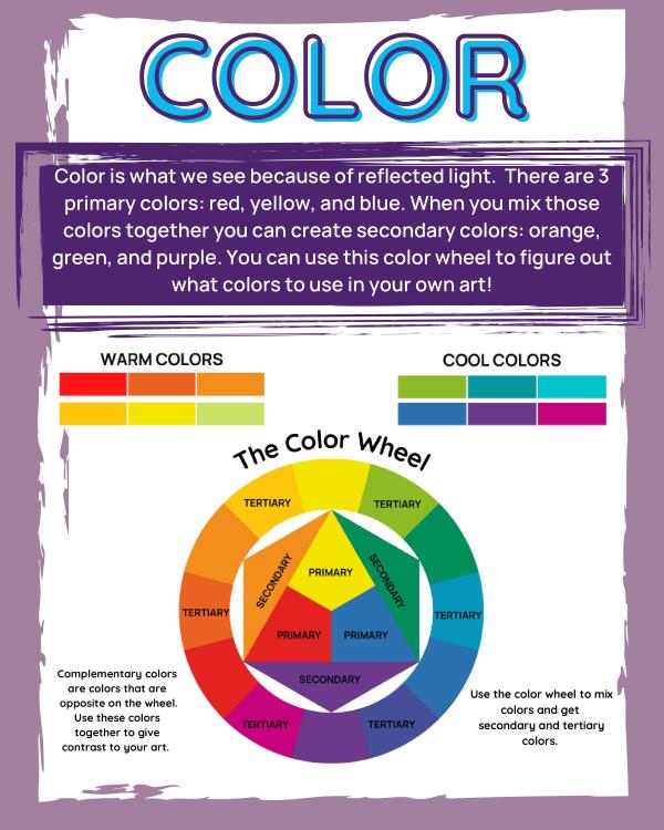 Here it is: your go-to guide for explaining the 7 elements of art to your children! This printable describes each element in kid-friendly language and gives visual examples too. The cover page provides a quick summary of each element—it’d look great hanging above your children’s art area. After that, there’s one page dedicated to each element. Work through it with your children and use the recommended activities in this blog to practice each element.