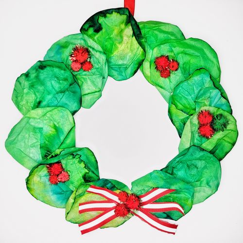 Add washable markers to coffee filters, spritz with water, and you’ll be on your way to creating a beautiful Christmas wreath!