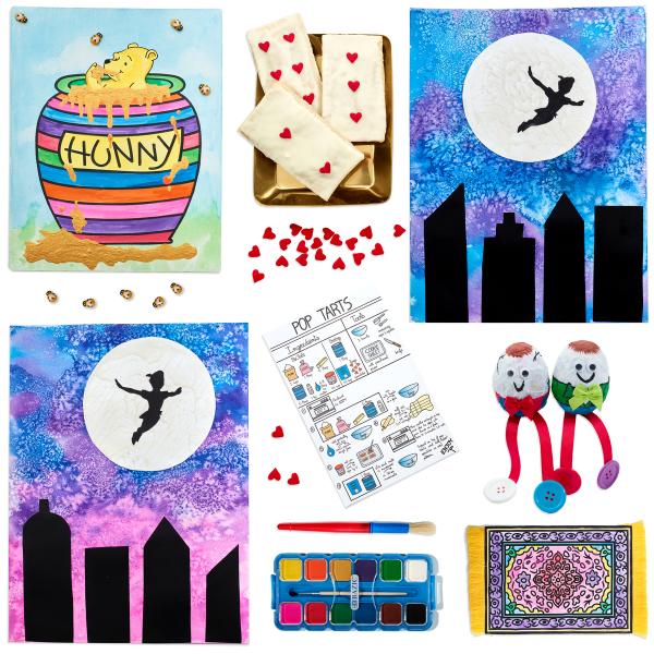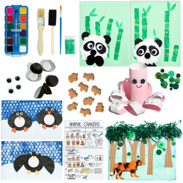 Throughout this art box, young artists will paint, stamp, cut, and layer their own floral creations. They’ll use a few unexpected art supplies, too. A plastic straw becomes a stamp, tissue paper becomes paint, and a coffee filter turns into a colorful flower! With each piece, children are encouraged to imagine new ideas and make something truly unique. Plus, they’ll get a look at chromatography in the color-themed science project and make fun playdough with the visual recipe.
