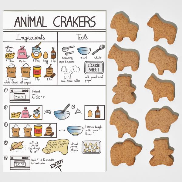 Bring the fun of the zoo into your home with this art box! In each project, children will create art inspired by their favorite wild animals. Pandas, tigers, and penguins are all here! Little artists will have the opportunity to get messy as they mix up their own paint and work with bleeding tissue paper. Plus, they’ll explore art supplies with interesting textures like crinkle paper, corrugated cardboard, and bubble wrap. Kids will be awed by the color-changing octopus in the science project, and they’ll love to snack on the animal crackers they make using the visual recipe.