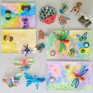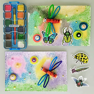 Make many colorful bugs with this fun art kit! Perfect for children who are intrigued by these small and, oh so interesting, mini-beasts! Make dragonflies on a beautiful watercolor and a salt background. Then create spiderwebs with glue and add fluffy spiders to it. Paint bright butterflies, learn all about tiny ants, and create origami bees and ladybugs!
