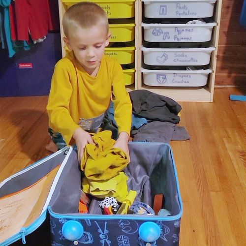 Letting your children pack themselves is a great way to encourage a little bit of independence in your children and save some time in the process! Young toddlers will likely need a lot of help, but they’ll enjoy getting organized and being in charge of their own belongings. Older kids will likely be able to pack independently. They’ll enjoy playing a role in getting your family ready to go and may even be able to help younger siblings get packed, too.