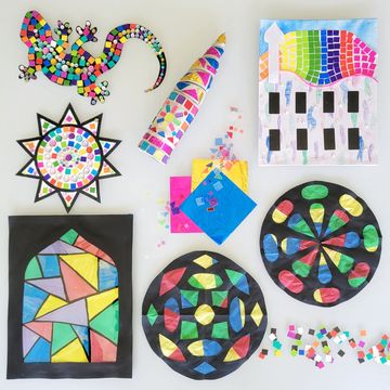 In this art box, children will learn about Gaudí, his colorful artistic style, and some of his most famous buildings. They'll transform a white canvas into a colorful house with a mosaic roof. They'll design two stained glass reproductions, create a clay tower, and lay out a mosaic sun and lizard. Each project is based on one of Gaudí's works so kids will be able to see what inspired him and use their imaginations to make the projects all their own.