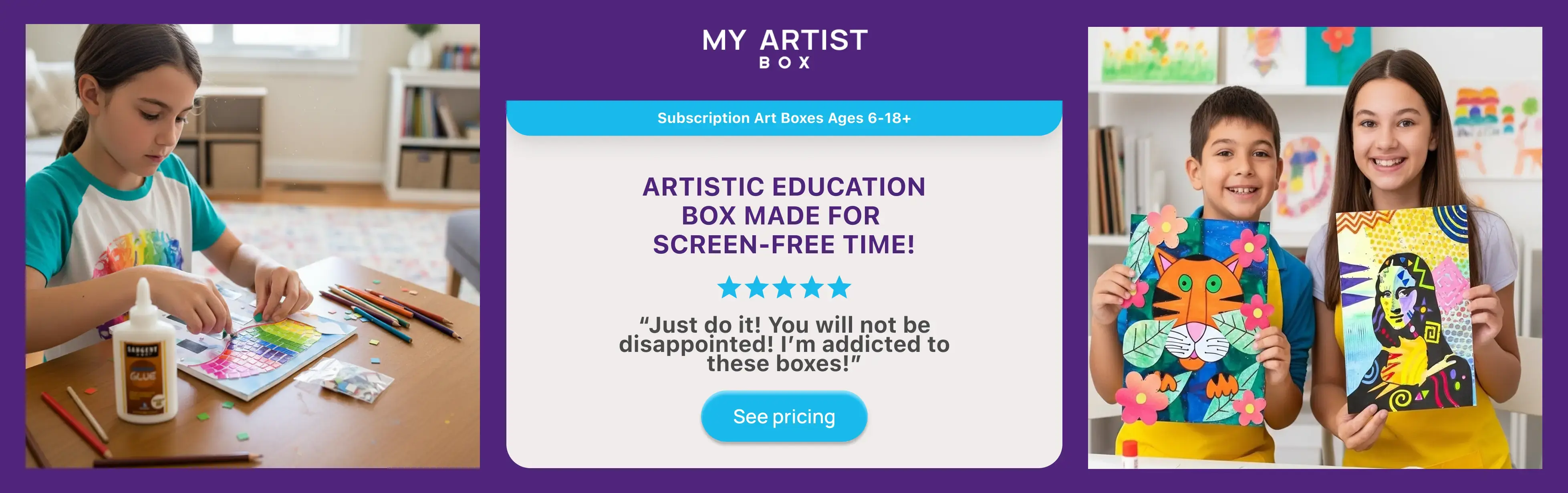 In this My Artist Box, young artists explore portrait drawing, mixed media, book design, and creative storytelling through art. Each project is inspired by Reed’s original works and introduces meaningful techniques in a way that feels engaging, hands-on, and achievable. Students build confidence as they experiment with layering, texture, typography, and design, creating artwork they’ll be proud to display.