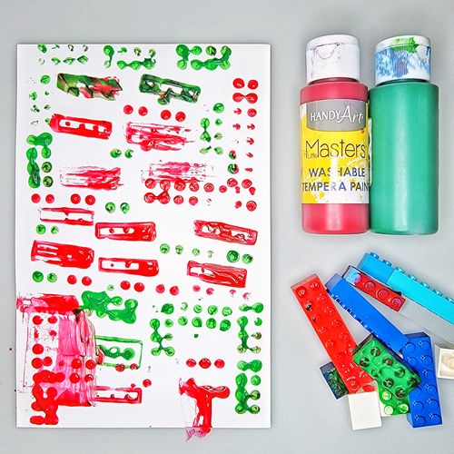 Pour a few colors of paint onto a paper plate. Children can dip one side of a LEGO into the paint and then stamp it onto the paper. Experiment with different LEGO shapes!