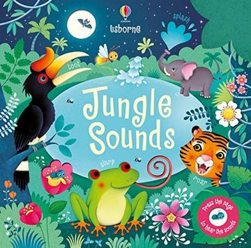 Transport children to the jungle with this interactive book. Each page includes a button that plays an authentic sound from the rainforest. Kids will hear birds, tigers, frogs, elephants, and a thunderstorm. There are vibrant illustrations and cut-out details throughout the book. This one is a kid-favorite! Read it with toddlers and young preschoolers.