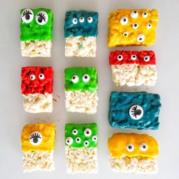 A few extra ingredients transform these kid-favorite marshmallow treats into boo-tiful monsters!