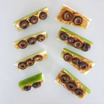 Spread your favorite nut butter on celery sticks and add olives on top. Instead of ants on a log, you get eyes on a log!