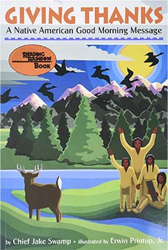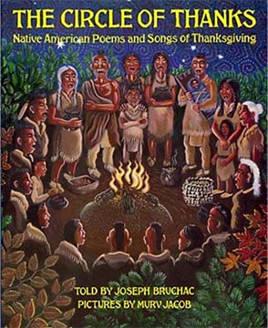 This book includes 14 poems and songs with themes of thanksgiving and appreciation of nature. The text is based in part on the traditional culture of the Pawnee, Kwakiutl, Navajo, Cherokee, and Papago people. Full color, realistic artwork fills the pages. This book takes a more serious tone and is best suited for upper elementary readers.