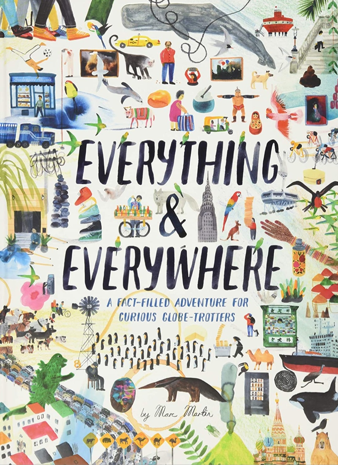 This book is a colorful explosion of 15 places on Earth and the things that make each location unique. Kids will explore Hong Kong, New York City, and a few places between the two. Each page features surprising facts, sites that lie beyond the beaten path, and sketch-like illustrations. It’s a large format book, too, which means kids will love the feel of it. A great introduction to the world for kindergarten and elementary kids.