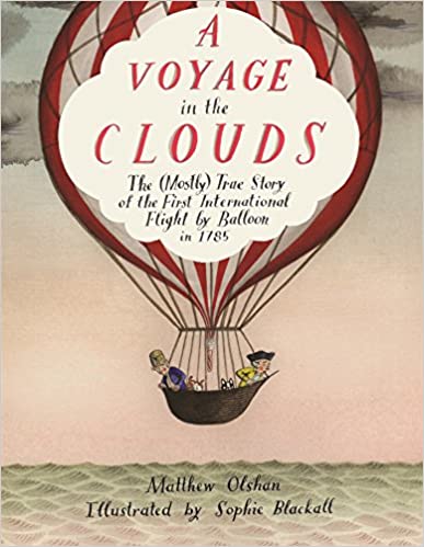 An entertaining story of Dr. John Jeffries and Jean-Pierre Blachard’s successful hot air balloon flight over the English Channel. Most of the story is mostly true, but the author takes some liberties, such as the 2 dogs on the flight with their owners. The 2 men did not like each other but had to learn to work together to have a successful trip. Blanchard did try to keep Jeffries from going on the flight by adding extra weight to their supplies and both men did pee over the side to lighten the balloon when it looked as though they were headed for a crash landing. Recommended for readers ages 4-8.